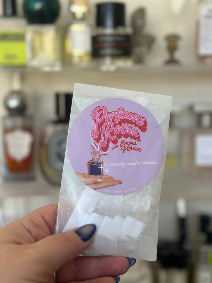 I have listened to so many episodes of Emma Vernon’s podcast, Perfume Room, that by the time I actually talked to her, I felt like we were already old friends. Emma is disarming and welcoming and someone you feel like you could talk to for hours, and not just about perfume. Which is probably why she’s been able to create such a thriving community around her pod. She hosts a monthly Smell Club where she curates 5 fragrances based around a common theme or note — it’s like a book club except everyone is smelling in real time and sharing their reactions and thoughts. People zoom in for it from around the country and tickets sell out quickly, even with three sessions offered. It’s become one of the highlights of my month. There’s something special about how easily Emma can get people excited about perfume, an industry that’s traditionally felt intimidating and gate kept. She’s used her popular platform to promote countless perfumers, many just starting out or not well know. Generous in sharing her knowledge and her platform, she’s a rare selfless influencer (although so much more really) who genuinely feeds off of other people’s creativity and passion.