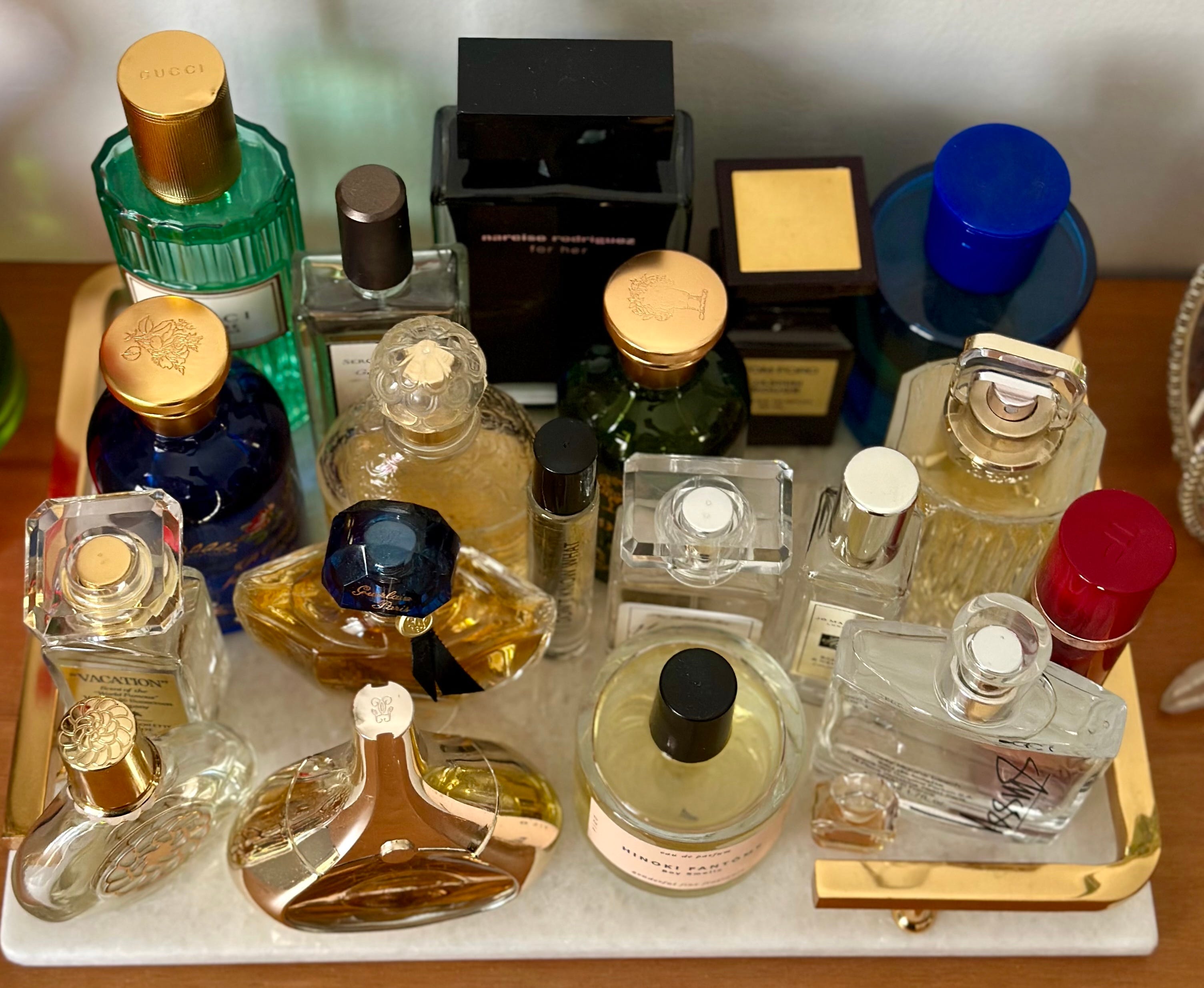 Perfume is really having a moment. My guess is there’s at least one person in your friend group who has gone down the rabbit hole, or maybe a friend of a friend. Go to that friend’s house and sniff their collection. I love taking my friends through my collection when they come over. As a perfume nerd there’s nothing more fun than talking about all my different fragrances with someone who is curious and will listen and finding what my friends like best in my collection. Here’s a fun interview I did with a good friend about her perfume collection.