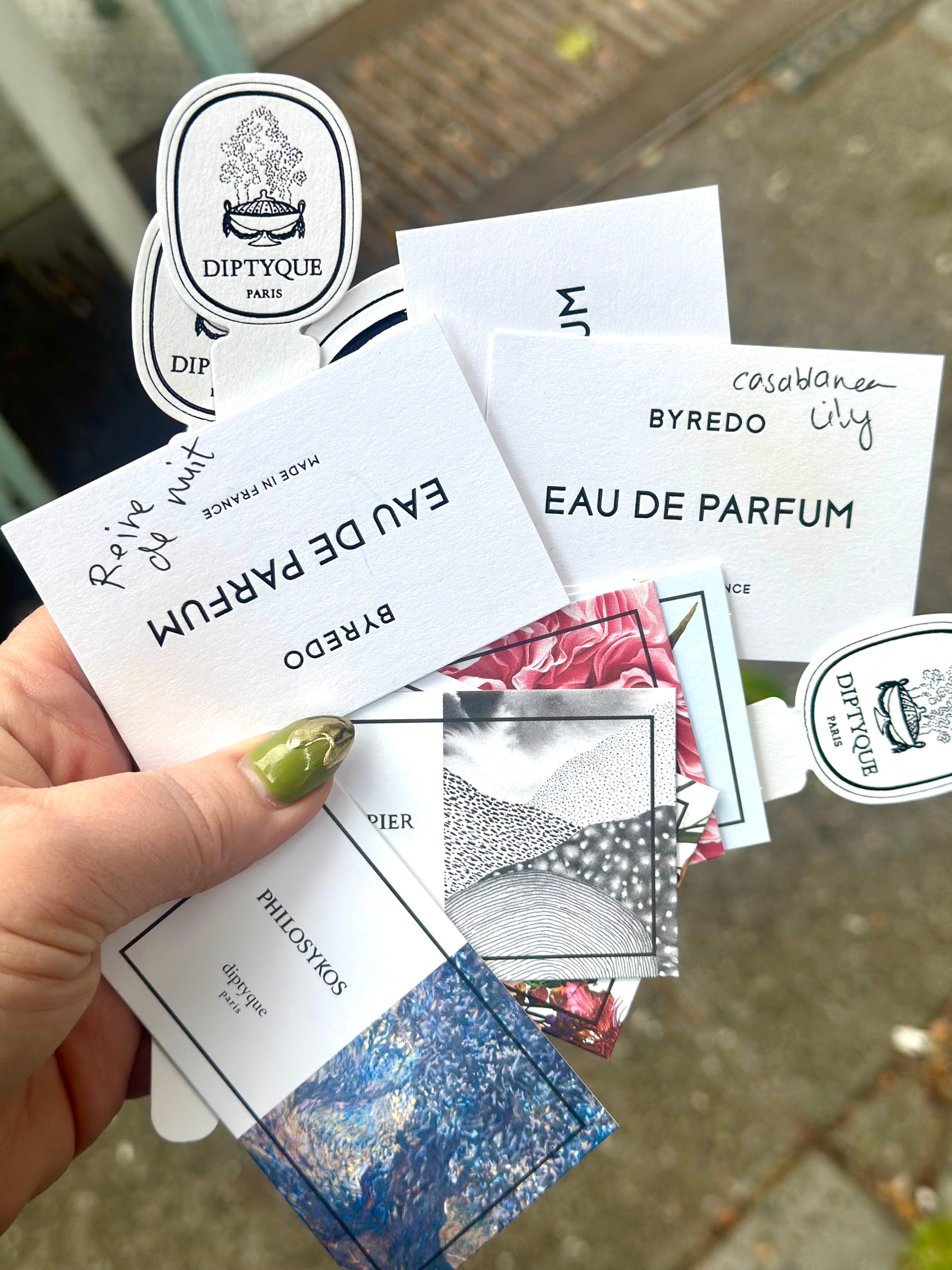 If you’re lucky enough to live in a city with perfume shops this is the best way to get into perfume. I’ve shared the story about my first time in Tiger Lily (now Ministry of Scent) that opened me up to the world of perfume, in large part due to how much time the owner, Antonia, spent with me that day. People who work at perfume shops are almost always friendly and eager to help you find something you’ll like. So go in curious and don’t feel dumb asking questions, they do not expect you to be an expert. It’s literally their job to guide you. If you smell one thing and tell them what you like or dislike that will help them guide you towards the right fragrance. In SF we have Ministry of Scent and ZGO which carry many niche brands. Both have incredible staff eager to help you find your perfect scent. We also have a Le Labo, Byredo, and Diptyque — all on Fillmore Street so you could hit up all three in one afternoon (I often do). If you’re in LA check out Scent Bar and Scent Room. And recently in NY I stopped by Stéle in Williamsburg Brooklyn and was totally smitten with the owners, the space, design, and lines they carried.