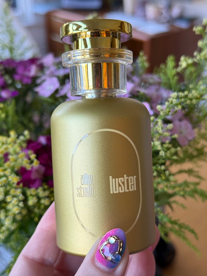 I know I mentioned the new releases from Alloy Studio, but did I tell you how much I love Luster? It’s a sweet potato pie scent that strikes just the right balance of sweet and savory. It has a beautiful mix of spices that make the dry down feel rich, savory, and thick. It reads a little starchy to me, very reminiscent of the fall months, which makes it all the more cozy and comforting. Bryson just keeps getting stronger as a perfumer, and it’s really fun to watch what he and Eddie are creating with Alloy, one of the most original houses out right now.
