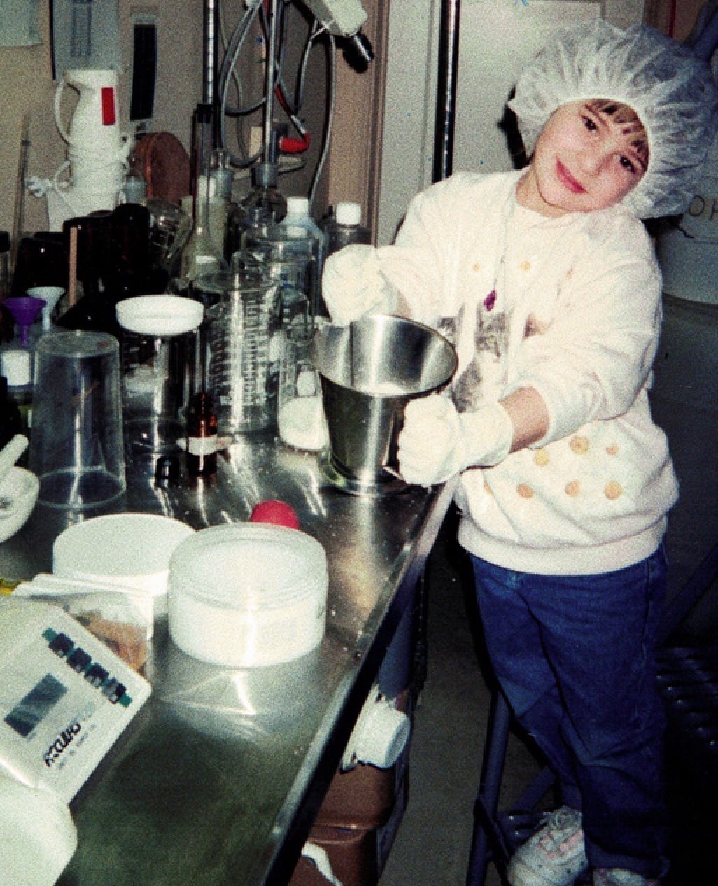 Being an only child with immigrant parents, I was under my mom’s desk at three months old. That shaped my experience as a human, seeing two hard-working people and being submerged in a very technical world. My mom is a formulator and my dad’s an architect. Their small business was the two of them and three people in a tiny facility. Every after-school activity was at the facility. Every summer break was at the facility. Kids I grew up with will tell you we had field trips there and made candles.